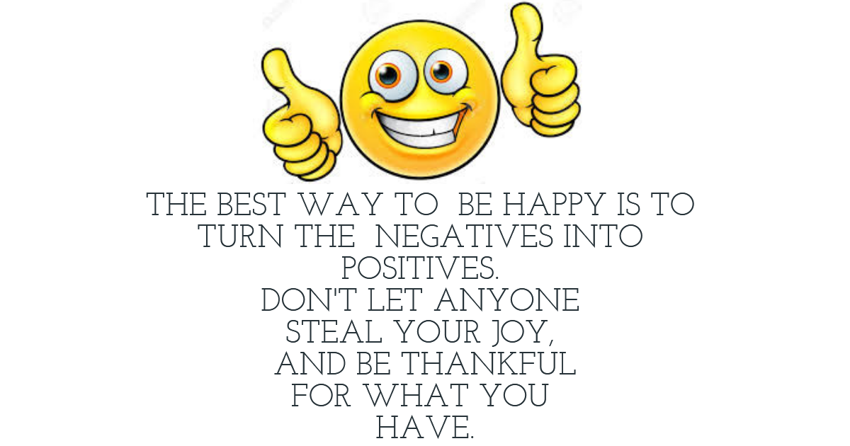 "The Best way to be happy is to turn the negatives into positives. Don't let anyone steal your joy, and be thankful for what you have."